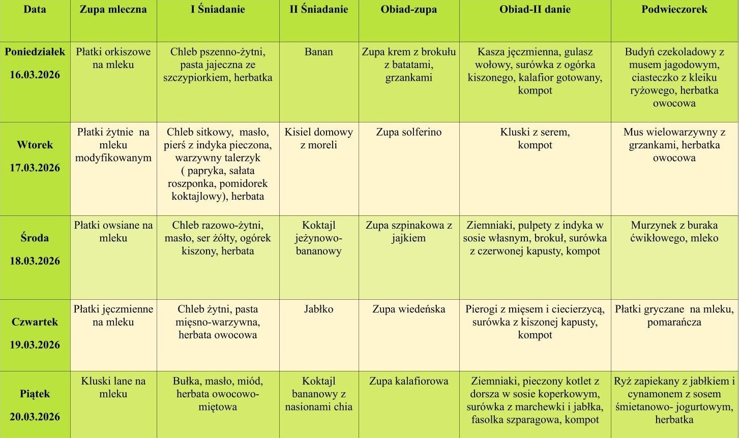 W przypadku wyświetlania nieaktualnych jadłospisów proszę odświeżyć stronę przeglądarki klawiszem F5